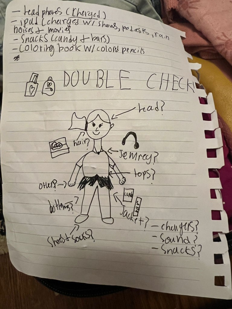 She made a list for her brother, too. The kids are good travelers, Lydia’s been to England, France, Italy, Japan, and Kenya. Pretty good for a nine-year-old, right?