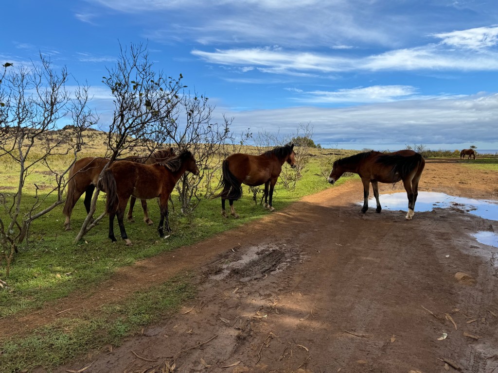 We did the whole west side of the island today. During period of time before 1600 (when the Maoi statues were being built), the Rapa Nui people had a very advanced culture. I thought the big heads were mostly decorative art or a spiritual expression, but they also are astronomical, like Stonehenge. The placement also served as information about migratory birds, wind direction, and good fishing. It’s clear they had knowledge of trigonometry. Additionally, they had advanced farming methods, which involved growing plants in caves, so they were protected from the salty winds.