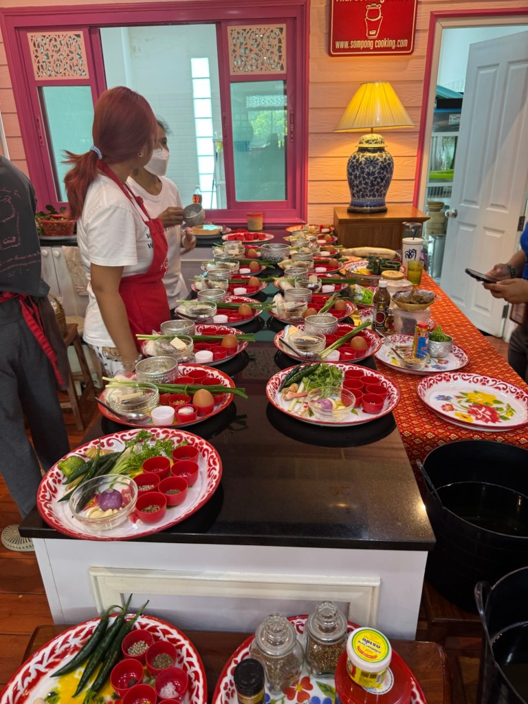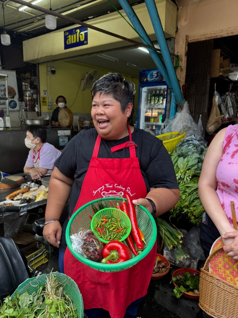 We started the day with a trip to the local market to buy ingredients for our cooking class. Nearly 20 years ago, when I was last in Thailand, our family took a cooking class in the backyard of a man who worked in a restaurant. Today, cooking schools have multiplied—ours had six different classrooms across three stories, its own line of merchandise, and a strong social media presence.
