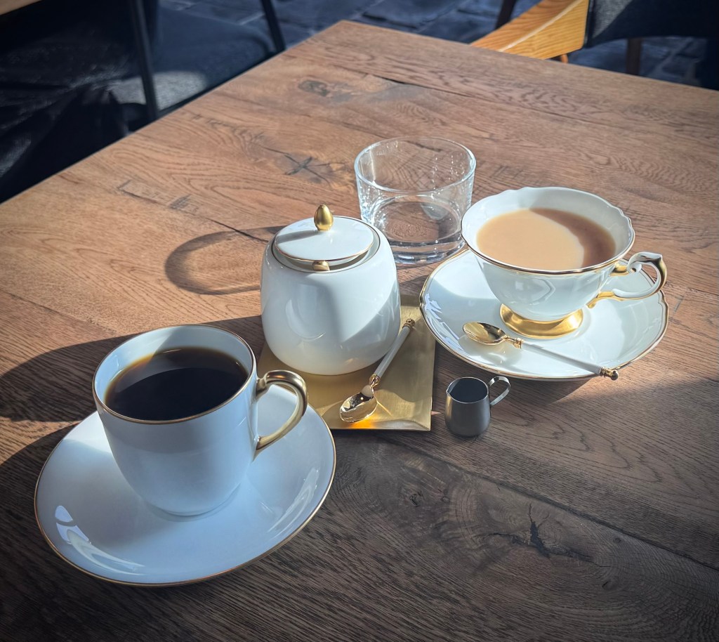 Fancy coffee/tea. No pastries. Isn’t this teeny milk pitcher adorable?