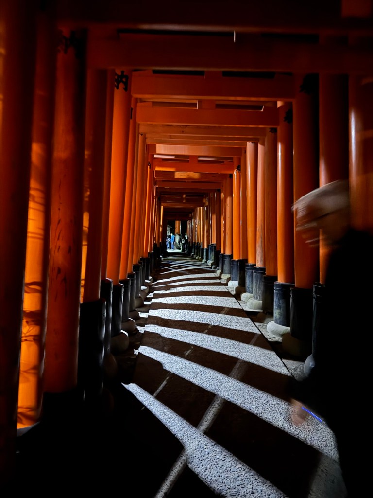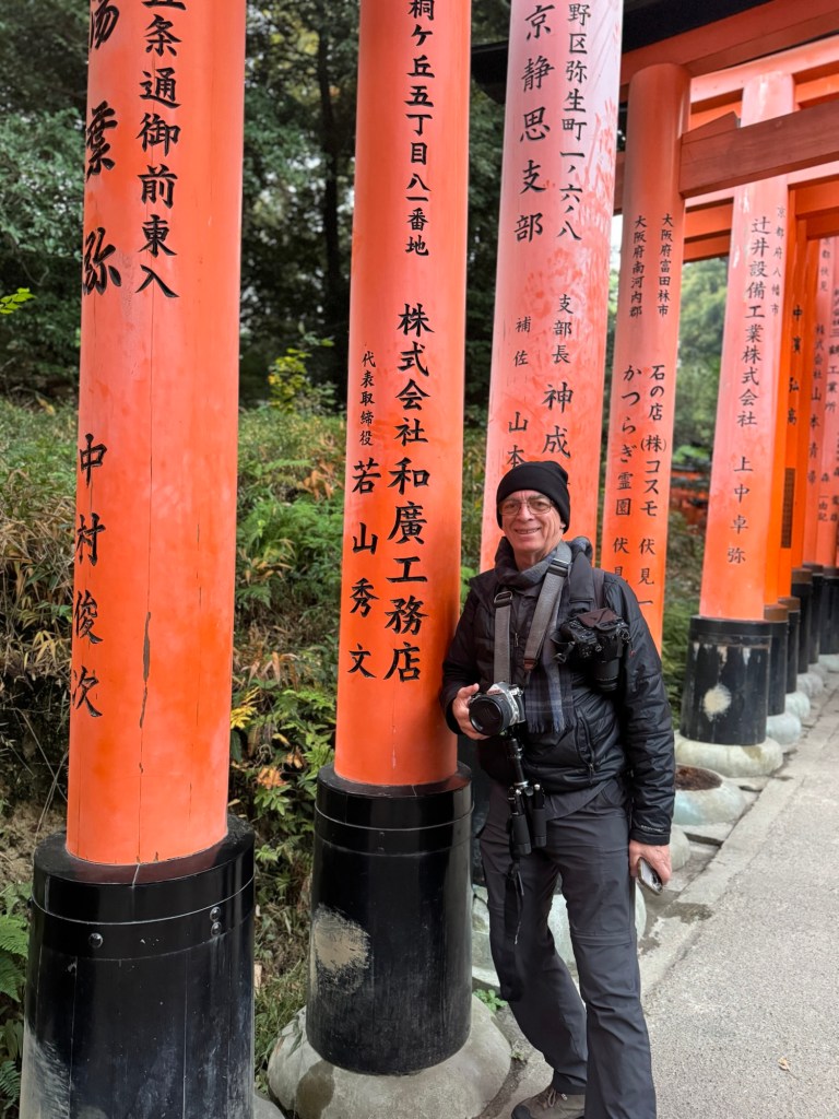 Fushima Inari Taisha was one of the things I was looking forward to the most in Kyoto. I had seen my daughter Kelly’s pictures when she went years ago, and it looked really cool. It’s a series of wooden gates that are bright orange and form a kind of tunnel almost 2 miles long.