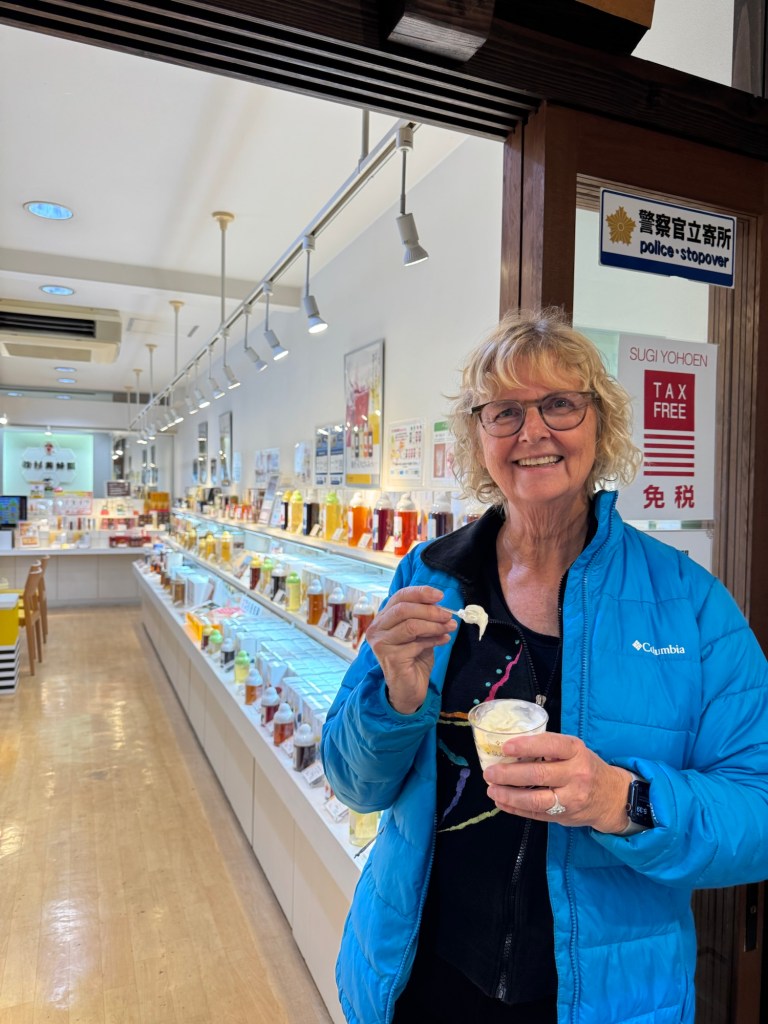 Everything in Japan is beautifully packaged. Even the Starbucks orders came in a nice bag…very hygienic because no one is touching the cup to see the name…only the bag.The Shinkansen (bullet train) reduces the one hour drive to a 15 minute train ride. Fall colors are in full glory here now. You don’t see this in California!