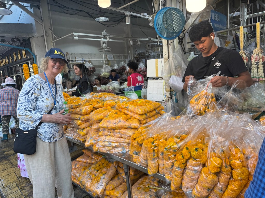 Riding in tuk-tuks to the flower market—the largest in Southeast Asia—felt like being on Mr. Toad’s Wild Ride at Disneyland. It was crazy and totally fun.